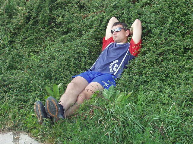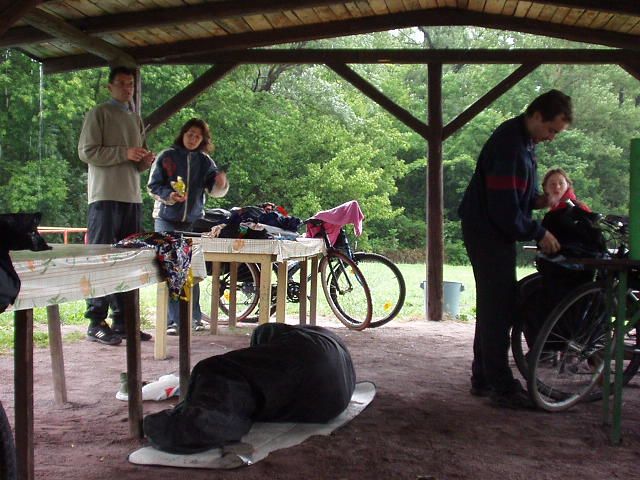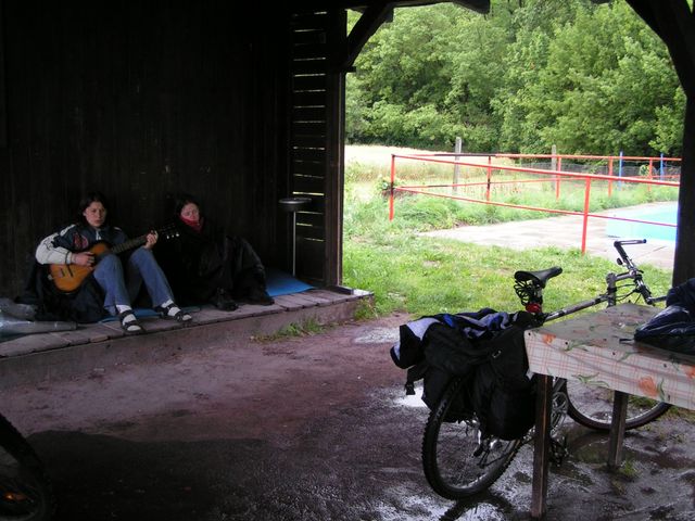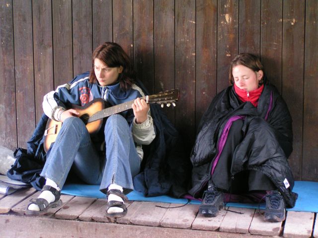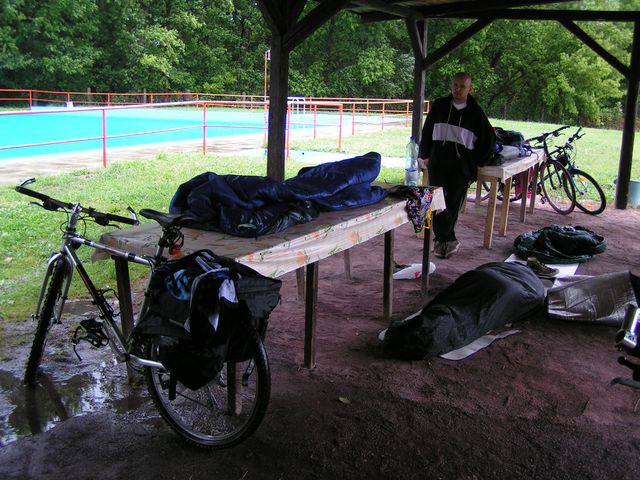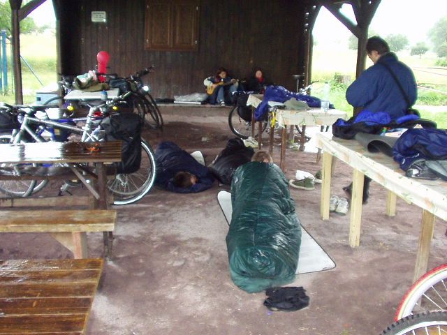 K ránu hodinka spánku (ti z diskusního kroužku, ostatní o něco víc) a přišlo tornádo, vyhnalo pod stříšku, pod kterou stejně teklo. Jen Štěpánovi to nevadilo a spal až do té doby, než ho Zdenda vykopal ze spacáku svým zpěvem (vstávej semínko holala, bude z tebe fialenka!).