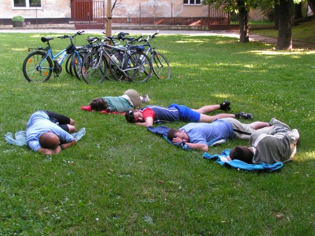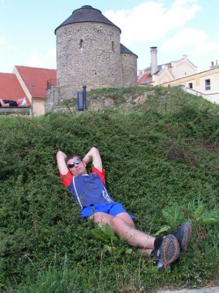 Posnídali jsme česnečku a vyrazili na obhlídku Znojma. První naše zastávka patřila hospodě, Hostánek klukům zachutnal - v dobré náladičce a lízátkem v puse jsme vyrazili do znojemského podzemí. Obědvali jsme v místní jídelně za velmi přijatelné ceny. Ačkoli byli kluci velmi unaveni a jejich plánem bylo: návštěva pivovaru nebo jít spát, kulturní referentky (Dana, Pavča) zavelely a šlo se na prohlídku rotundy a kostela. Kolem čtvrté odpoledně jsme únavou padli v místním parku a na hodinku usnuli …