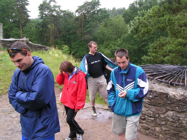 Ráno nás probudil déšť a počasí se pořád nechtělo umoudřit - pod vzrostlými kaštany na táborském náměstí jsme čekali skoro až do dvanácti, abychom nezmokli. Na zřícenině Kozí Hrádek jsme podpořili sraz levicově orientovaných stran … Máme první (a poslední) ztráty - Jana ze zdravotních důvodů odjíždí domů.