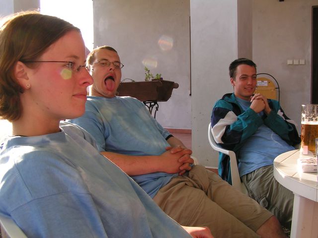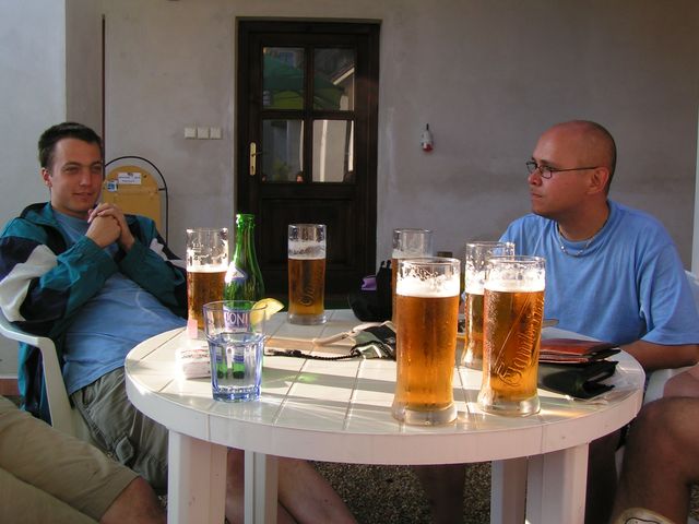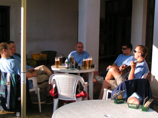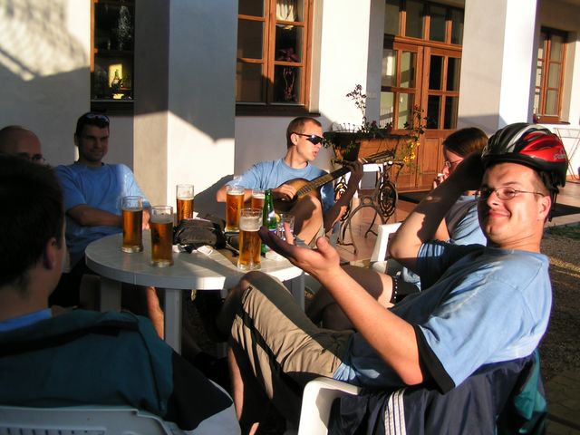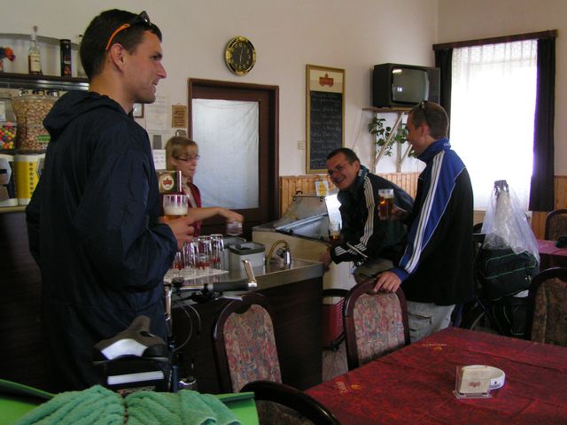 Hospoda v Mnichu: poobědvali jsme a zrovna ve chvíli, kdy jsme odcházeli, začalo pršet … Gročky, fotbálek, slivovice (došla), rum (došel), poličková Tenesee whisky (Jacka Danielse neměli) - tady jsme šli prvně do rizika! Poté, co přestalo pršet a my jsme vypili téměř celou hospodu, odjíždíme. Zastávka v Kamenici - ve zdejším pensionu se kuchaři nelíbila naše Cukrářská bosanova (prý kvůli hostům).