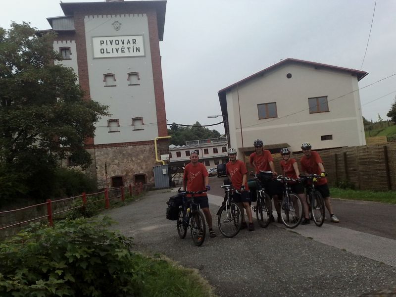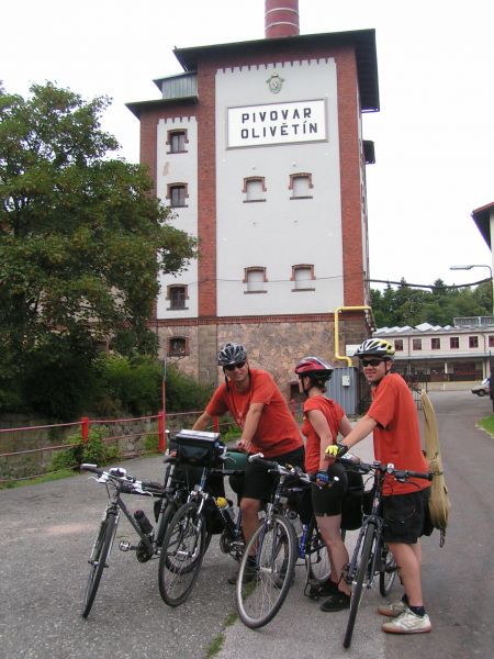 V Broumově marně hledáme hospodu, kde by točili místního Opata, vyjíždíme tedy na Olivětín v naději, že někde u pivovaru budou točit. Měli jsme štěstí, pivovar měl otevřenou podnikovou prodejnu a na nádvoří příjemné posezení. Každý máme jiný druh píva, vzájemně ochutnáváme, lahoda. Potkáváme tady týpka na horským kole, co podniká podobnou cestu jako my. Jen jezdí nalehko a spí po penzionech, srábek :-)