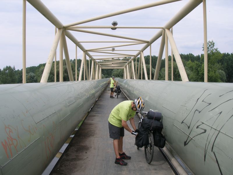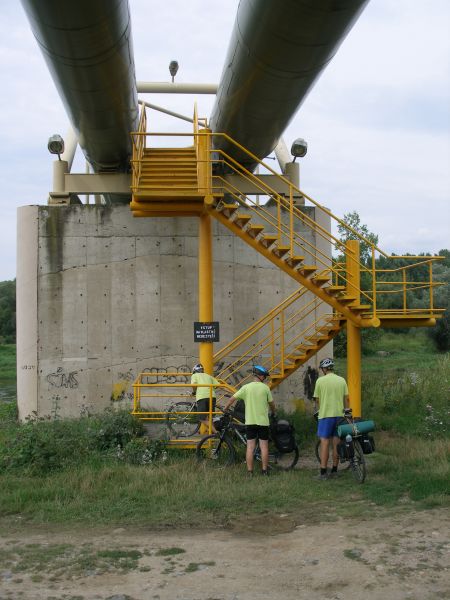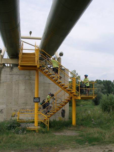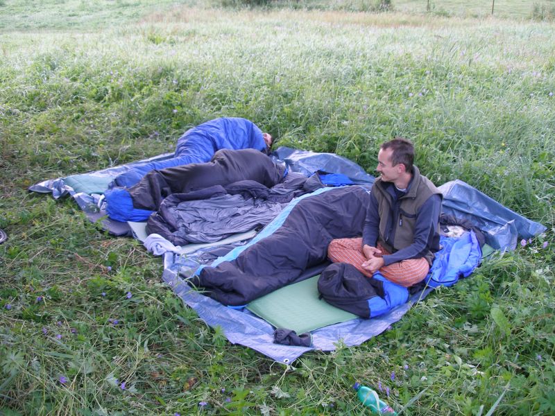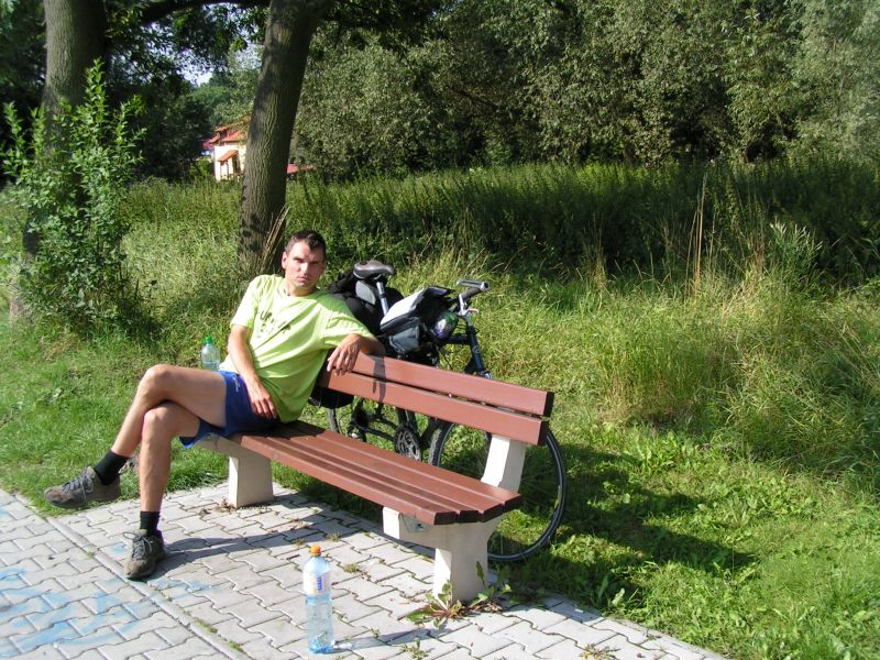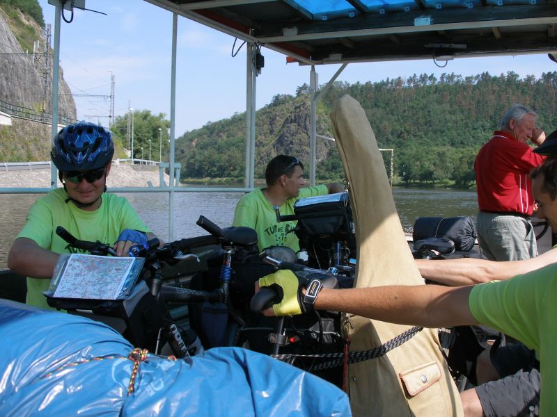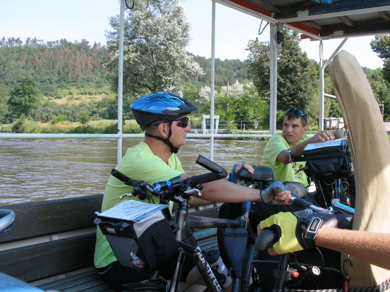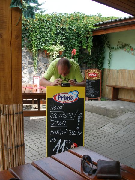 Probouzíme se pod jasnou oblohou na rovném místě v měkké trávě s krásným výhledem na zříceninu Okoř. Tak luxusní místo bychom za střízliva nevybrali. Po krátké přípravě vyrážíme na Noutovice a Svrkyně s naivní představou, že si v nejbližším krámku koupíme snídani. K našemu překvapení ale nacházíme prázdné regály a bandu ožralých místních s lahváči v ruce. Pro nás, měšťáky je to jako dávno zapomenutá vzpomínka. V krámu se chytáme až ve Velkých Přílepech. Snídáme v parku, kde Pepa našlápl exkluzivní hovno, čímž nám u snídaně zajišťoval „příjemné aroma“ :-) . Pokračujeme na Libčice n. Vltavou a to už jsme se napojili na vltavskou cyklostezku směrem na Mělník. V Libčicích přejíždíme Vltavu přívozem. První občerstvovací přestávka tohoto dne je v bufíku v Dolánkách. Po břehu dorážíme do Kralup, kde obědváme, pívo samozřejmě nechybí. Podél Vltavy a zajímavých skalních útvarů jedeme přes Nelahozeves do Veltrus, kde dáváme oraz v zámeckém parku. Následujeme cyklostezku, která nás před Mělníkem dovede k mostu přes Vltavu. Ovšem není most, jako most. Tento byl pro teplárenské potrubí a museli jsme překonat 2 patra po schodech. Přechod s koly a brašnami nás vysílil, takže jsme si museli v Mělníce najít hospodu, abychom dočerpali síly. Z Mělníka míříme do Kokořínského dolu nejkratší cestou údolím podél říčky Pšovky. U rybníku v Harasově se nám postavil do cesty další bufík. Tam už nás a celé údolí obklopovali krásné skály. Dál vedla cesta už pořád po rovině. Náš cíl jsme dosáhli po sedmé hodině večerní, jsme pod hradem Kokořín. Před poslední návštěvou hospody toho dne si jedeme za světla prohlédnout místo na spaní. Nedaleké tábořiště vypadá dobře, takže hurá do Hospody. Jedeme na jisto do kokořínského kempu, kde víme, že dobře vaří a rozhodně nezavírají v 8 večer jako v jiných blízkých hospodách. Při dobrém jídle i pití nám místní milá provozovatelka kempu (nosem připomínající tu holčinu z Hříšnýho tance) nasadila brouka do hlavy, že má v noci pršet, ať tam zůstaneme a že nás za malý poplatek nechá přespat v herně pro děti. Panáčky nám nosí automaticky i bez objednávky a všem se tam začíná líbit. Ale nebylo to jednoduché rozhodování a nakonec se muselo hlasovat. Nejtěsnějším rozdílem zvítězila varianta kemp, takže si po vítané očistě steleme v herně a usínáme.