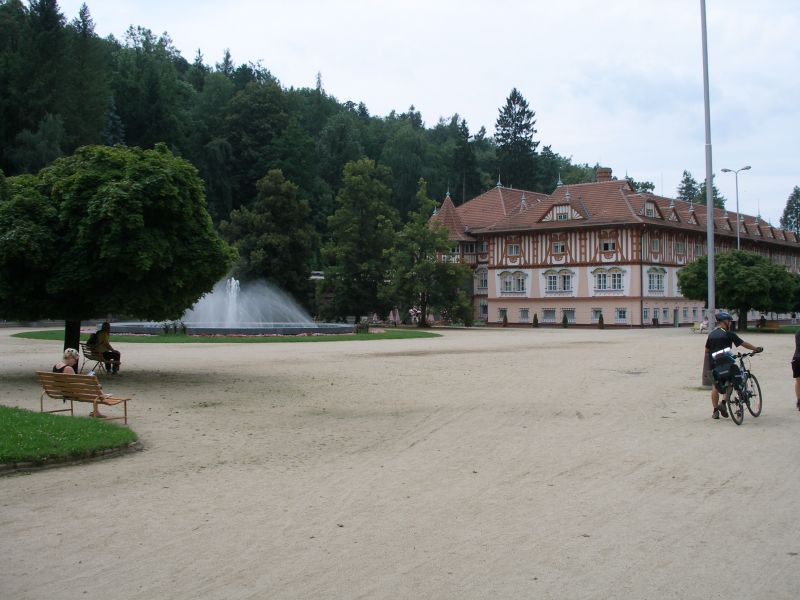 V Luhačovicích obdivujeme kolonádu a opět nikam nechvátáme. Vůbec jsme po včerejšku nějak zpomalení. Místo tradiční polední zastávky v hospodě, nakonec stíháme jen rychlý nákup v sámošce a nastupujeme do již přistaveného Galána.