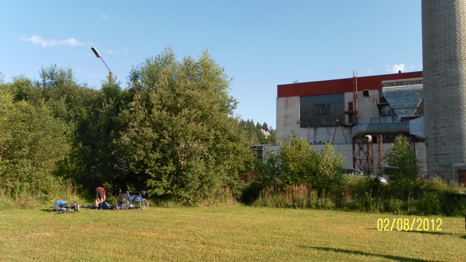 No jak jinak oslavit příjezd, než jedním vychlazeným u tenisových kurtů. Počasí se kazí, každou chvíli začne pršet. Sedáme na kola, abychom nepřízni ujeli... Ne daleko. Téměř v centru kousek od vody se nám zalíbila hospůdka se zahrádkou a malinovým pivem. Dáváme dva kousky a už máme náladičku :-). Jak tohle dopadne?