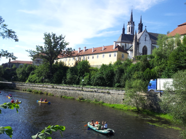 Pokračujeme dál přes Zátoň a Nové Spolí na Český Krumlov. Před sebou asfalt, po pravé straně plynoucí Vltava a na ní spousta lodí, vodáků a vodaček. Škoda že už má mám s přibývajícím věkem slabší zrak :-).
