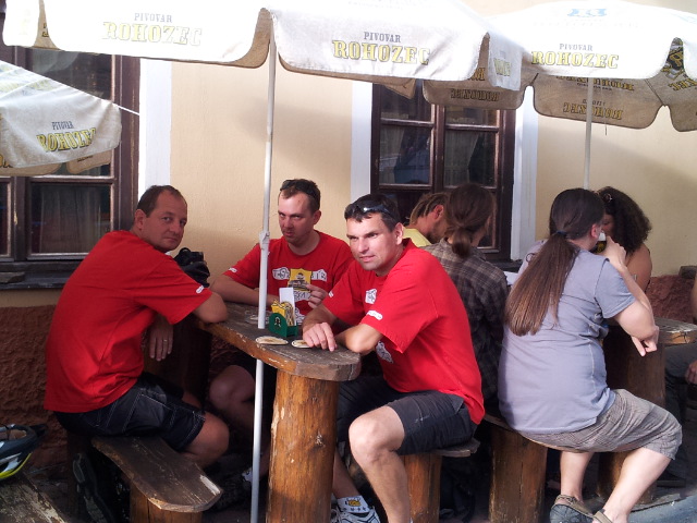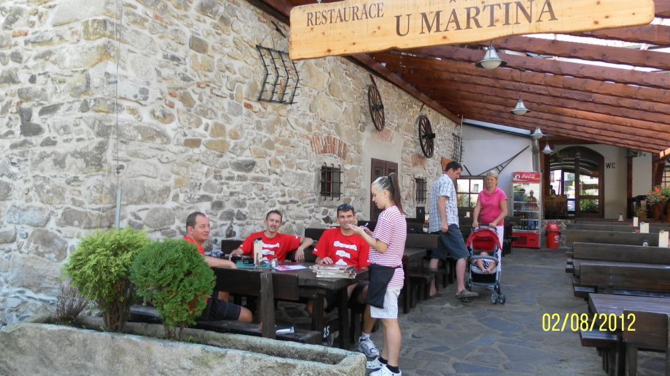 V Rožmberku potkáváme restauraci u Martina. To by nám Martin nikdy neodpustil, kdybychom tam nezašli na jedno. S výhledem na hrad to pivko chutná skutečně skvěle (i když je to Gambrihnus :-)).
