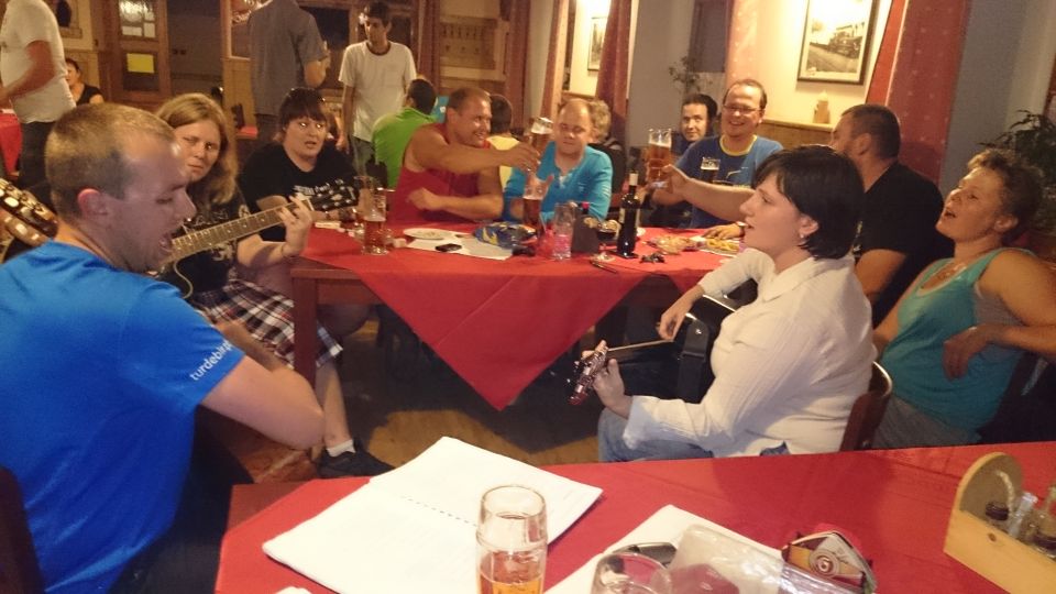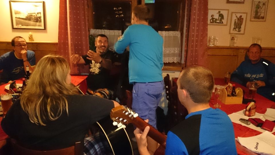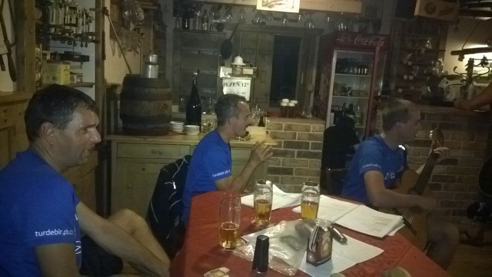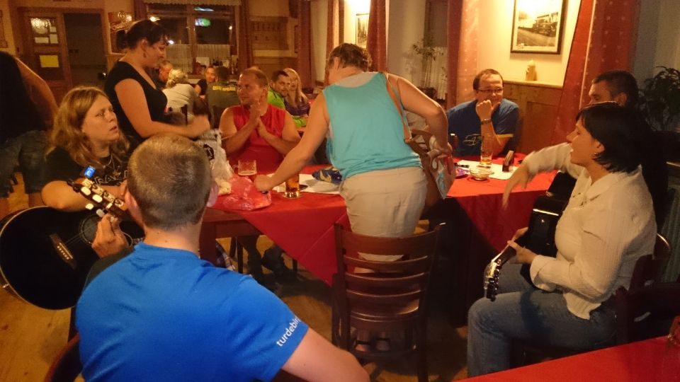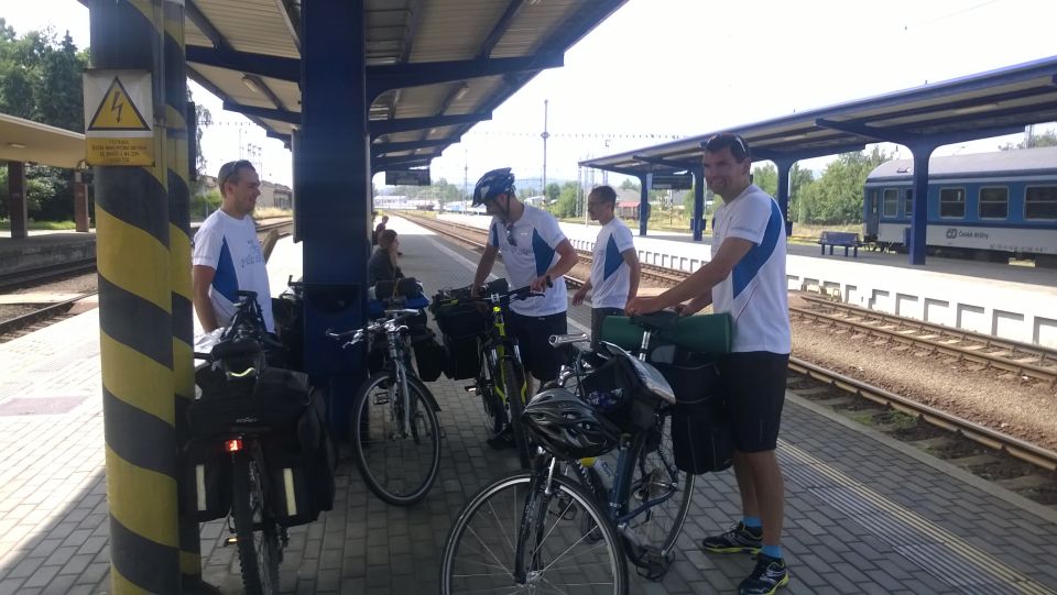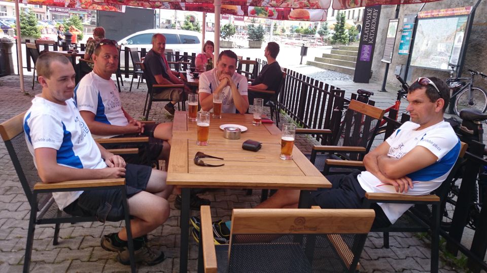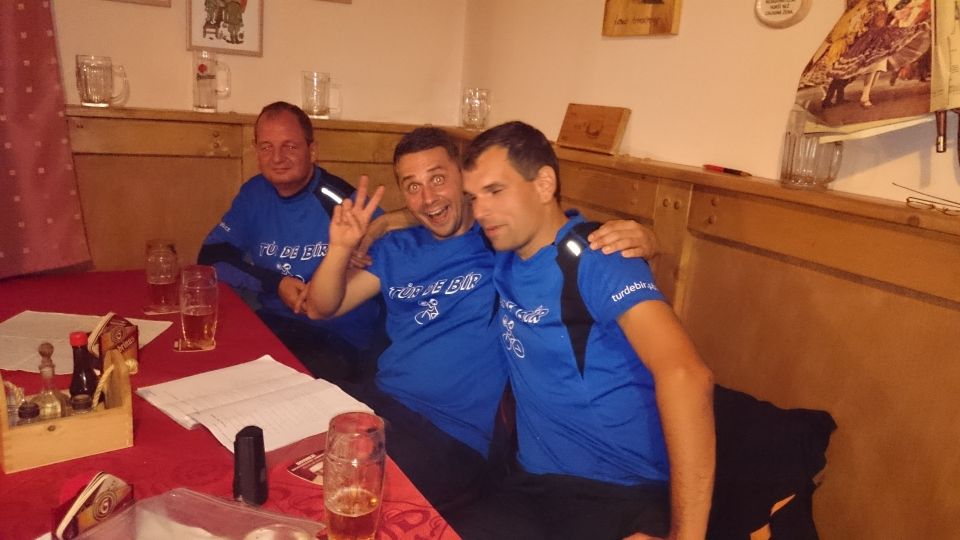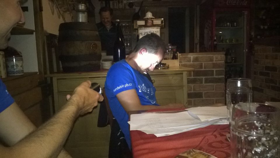 Cesta vlakem v klimatizovaném kupé příjemně utíká. Pravda, trochu si přes Plzeň a Beroun, kde přestupujeme, zajíždíme, ale lépe to vymyslet nešlo. V Příbrami na nádraží nás nikdo nevítá ..a když není vítání, nemůže být ani loučení.. Tak vyrážíme zakončit letošní ročník TDB až do Podlesí. Nějak se ale nemůžeme domluvit kudy. Před důležitým rozhodnutím chceme dát jedno „na prudko“ v místní nádražce, je ale zavřeno.. V Podlesí se schyluje k vyhlášení vítězů triatlonového závodu Brdonoš. Měli štěstí, že vlak jel oklikou. Tihle nadupanci v bílých dresech by jinak určitě promluvili do konečného pořadí závodu. Moderátor akce nás vyzývá alespoň k účasti na veslařském trenažéru. Nabídku odmítáme, najetých kilometrů bylo dneska už dost. S přibývajícím časem na stole vyrůstá docela slušný komín z kelímků… od limonády samozřejmě. Letošní ročník Turdebír se opět povedl.