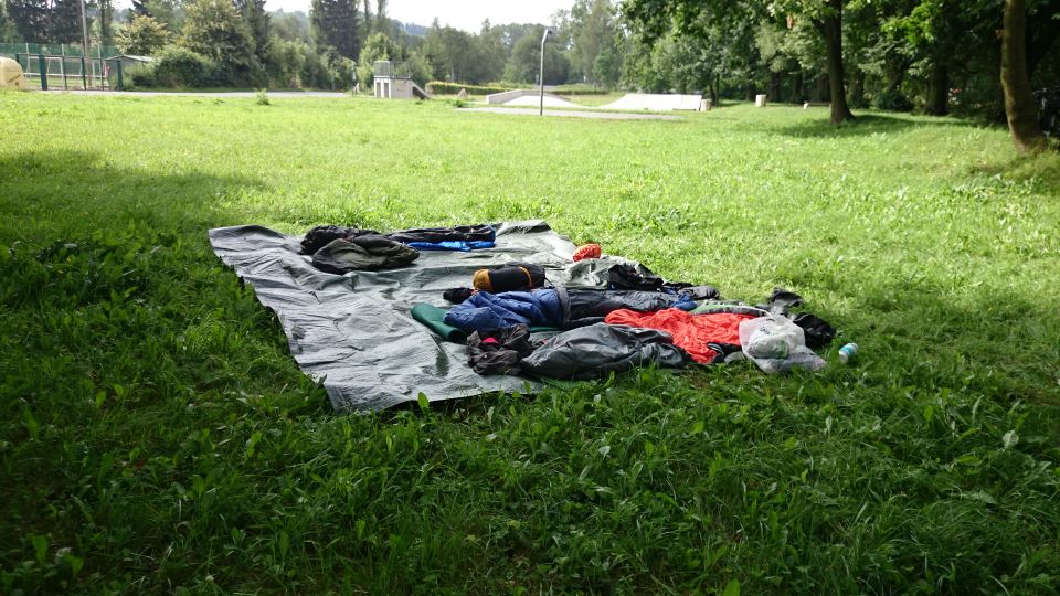 Probouzíme se v Janovickém parku, pár metrů od říčky Úhlavy. Po ranní hygieně jdeme sbalit spacáky a karimatky, a pomalu vyrážíme do centra na snídani. V místní prodejně nakupujeme něco k snědku a v nedalekém parku na lavičkách posnídáme. Není čas ztrácet čas, tak usedáme na kola a vyrážíme směrem na Klatovy, odkud nám jede po obědě vlak domů. Nechceme jet po hlavní silnici, tak volíme cestu po cyklostezce přes Bezděkov. Dorážíme do Klatov a ještě před obědem zajíždíme na nádraží, abychom zakoupili lístky. Je přesně poledne. Vlak nám jede ve 2 hodiny, tak máme ještě čas na oběd v restauraci Beseda na náměstí a krátkou prohlídku města.