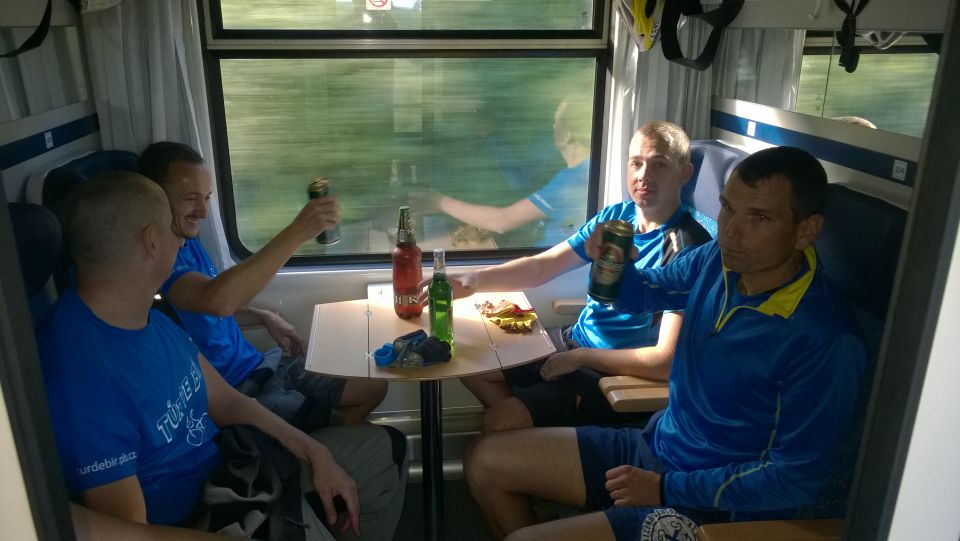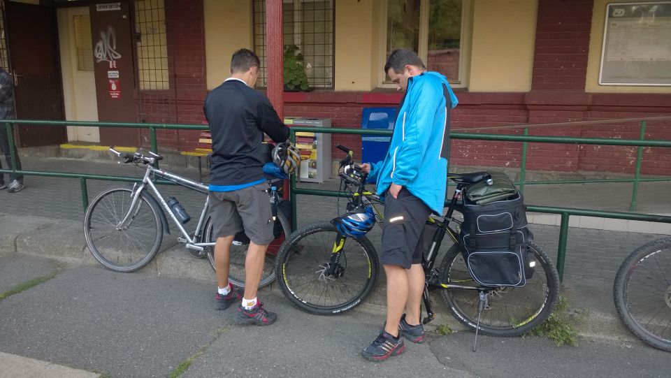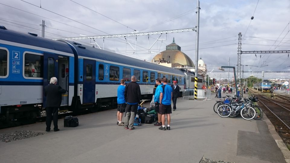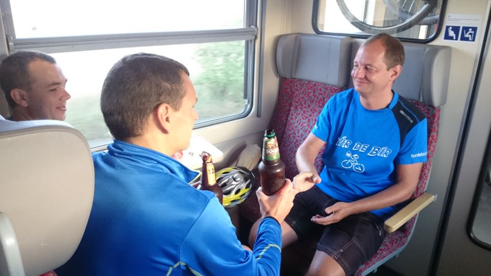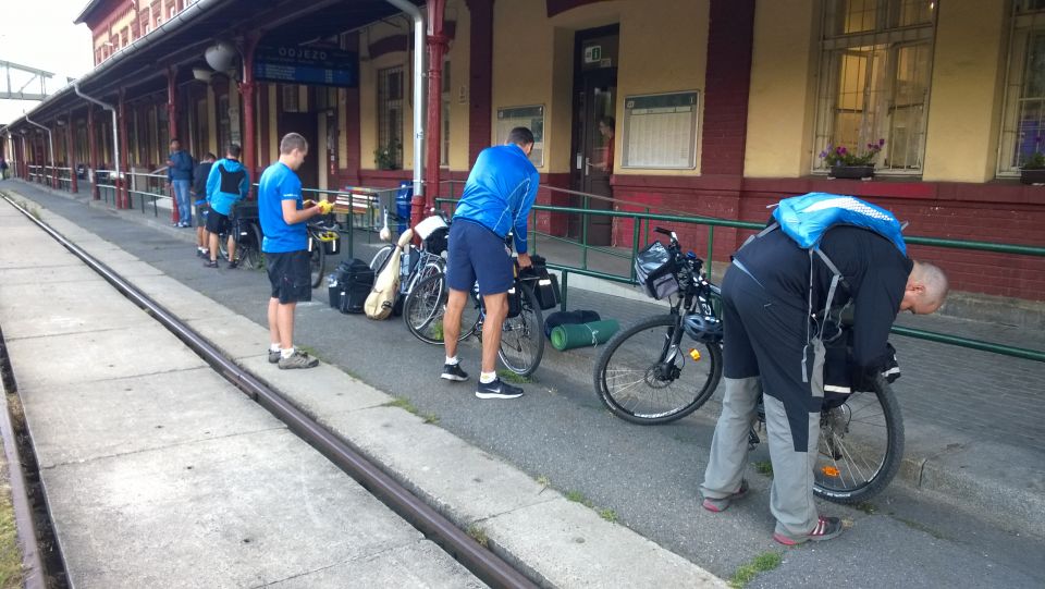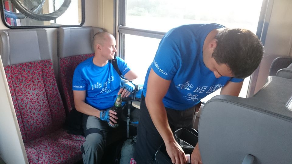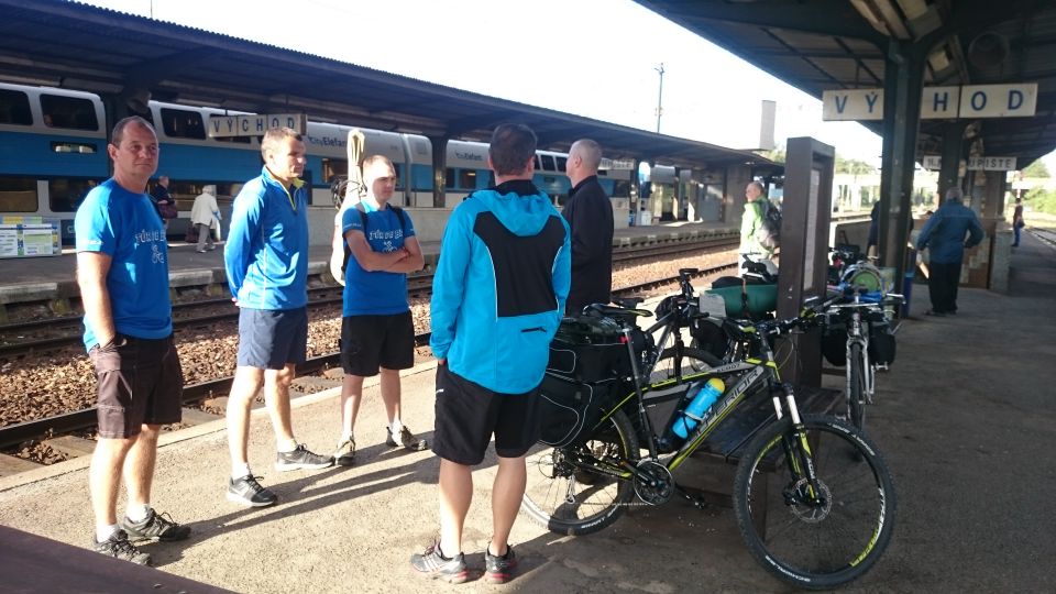 Již tradičně se v brzkých ranních hodinách všichni shledáváme na vlakovém nádraží v Příbrami. Tento ročník naše řady rozšířil další nováček, Petřák. Nalhali jsme mu, že je to super akce a on nám to sežral. A to je dobře, alespoň je o potenciálního vola více. Cestování vlakem už máme nacvičené, takže cestu do Klatov s přestupem v Berouně zvládáme bez problémů. Díky naší zásobě welcome drinků a piva různých značek ubíhá cesta rychle a čím déle jedeme, tím je cesta hezčí a veselejší. Možná jsme sice zklamali plané naděje chlapíka rozvážejícího ve vlaku občerstvení, že u nás udá pár piv v ceně poledního menu v lepší restauraci, ale zas až tak veselí jsme nebyli a cesta vlastně vůbec netrvala tak dlouho. V Klatovech se pro jistotu stavíme hned v hospodě, abychom nepřepálili začátek, a po doplnění tekutin vyrážíme po cyklostezce směr jih, do hor.