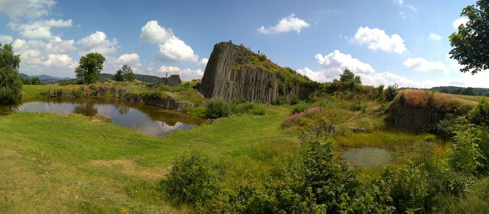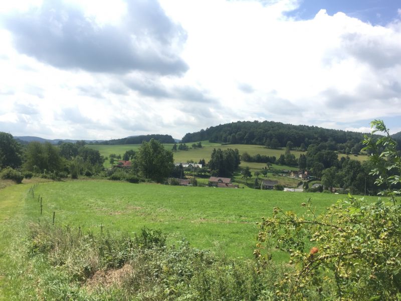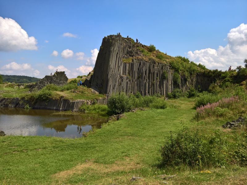 Dál pokračujeme po cyklostezce Varhany. Jde opravdu o příjemnou cyklostezku, která byla nově postavena na náspech bývalé železniční trati. Takže žádný krpály, jen mírně nakloněná rovinka, ovšem mnohakilometrová. Je vidět, že se stavělo za dotace, cyklostezku lemují nesmyslné dopravní značky přikazující jízdu do pole na neexistující, nebo zarostlé polní cesty. Cyklostezka nás dovede do Kamenického Šenova k Panské skále alias Varhany, kterou známe z Pyšné princezny.