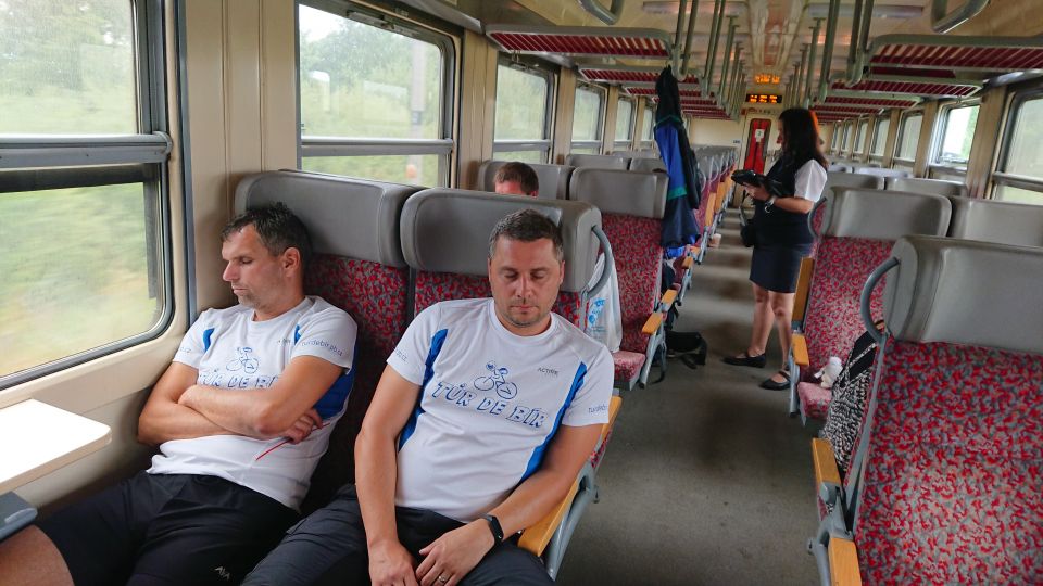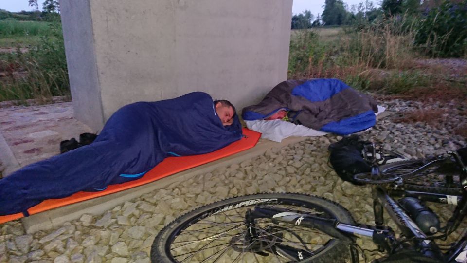 Musíme se rozhodnout, co teď. Je pět hodin ráno, nálety komářích komand neustávají, bouřka na krku a do odjezdu vlaku směr Příbram nám zbývá ještě pět hodin. Náš nerozlučný septet se trhá na dvě skupinky. A nyní malý jazykolam: Petři, kromě Petřáka se uvelebují na pohodlném a měkkém místě pod jedním z mnohých místních mostních pilířů E59.